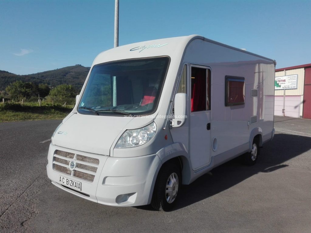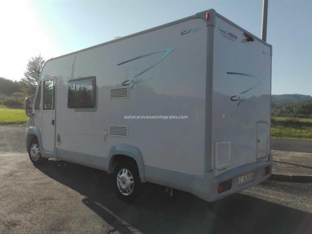 Autocaravana integral Pilote City Van CR60. Motor Fiat 131 cv.Modelo compacto de 6 m.2008 .69.000 km.Cocina en L. Nevera 100L con congelador.Baño con cabina de ducha separada. cámara marcha atrás. Toldo. Placa solar. Control velocidad tempomat. Calefacción Trumatic C.Antena TDT. TV pantalla plana. Cama matrimonio abatible sobre cabina. Cama matrimonio en salón. 4 plazas viaje.Muy buen estado.