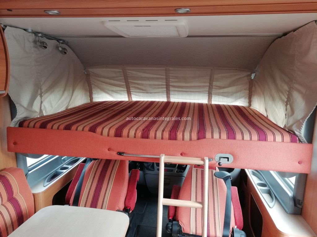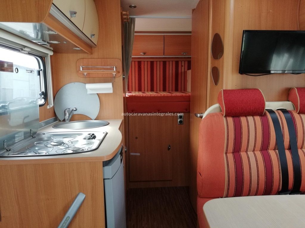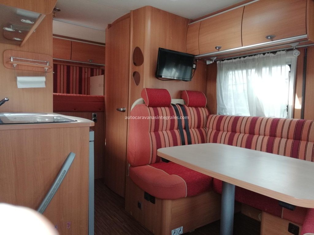 Integral Compacta Burstner Viseo i595. 6m longitud. 4 plazas ruta. Cama matrimonio abatible sobre cabina. Cama 1m sobre gran garaje trasero. Posibilidad de tercera cama en salon. Equipo Hifi Pioneer. AA cabina. Baño con mampara de ducha. Armario doble bombona gas. Toldo. Cierre seguridad Fiamma. Inversor 12-220v. Alarma gases. Luces exteriores con detector de movimiento. Cocina 3 fuegos. TV. Antena TDT. Antena parabolica. Portabicis trasero. Camara de vision trasera. Mantenimientos al dia. Muy buen estado con solo 50000 km.
